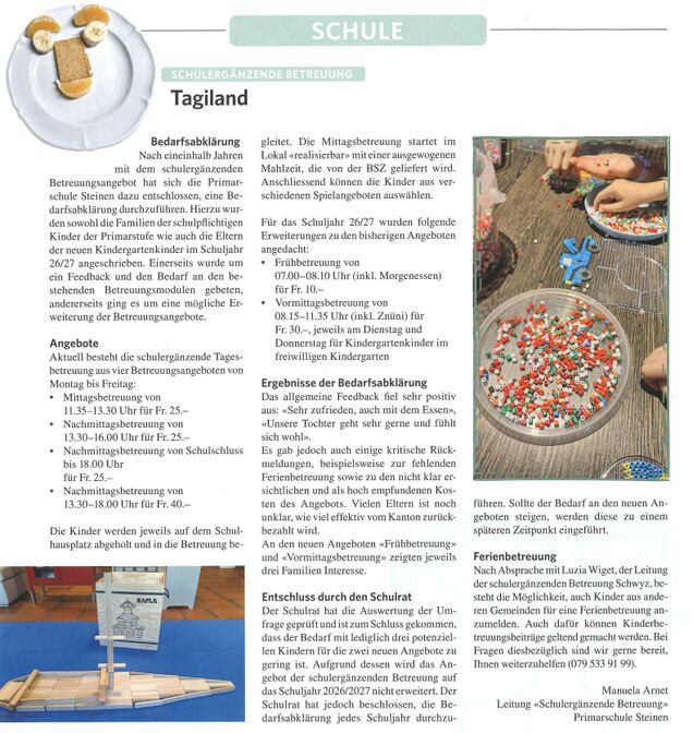 Der Besuch war für alle Kinder ein eindrucksvolles Erlebnis. Mit ihren selbstgebackenen Grittibänzen in den Händen und vielen neuen Eindrücken kehrten wir schliesslich glücklich nach Steinen zurück.