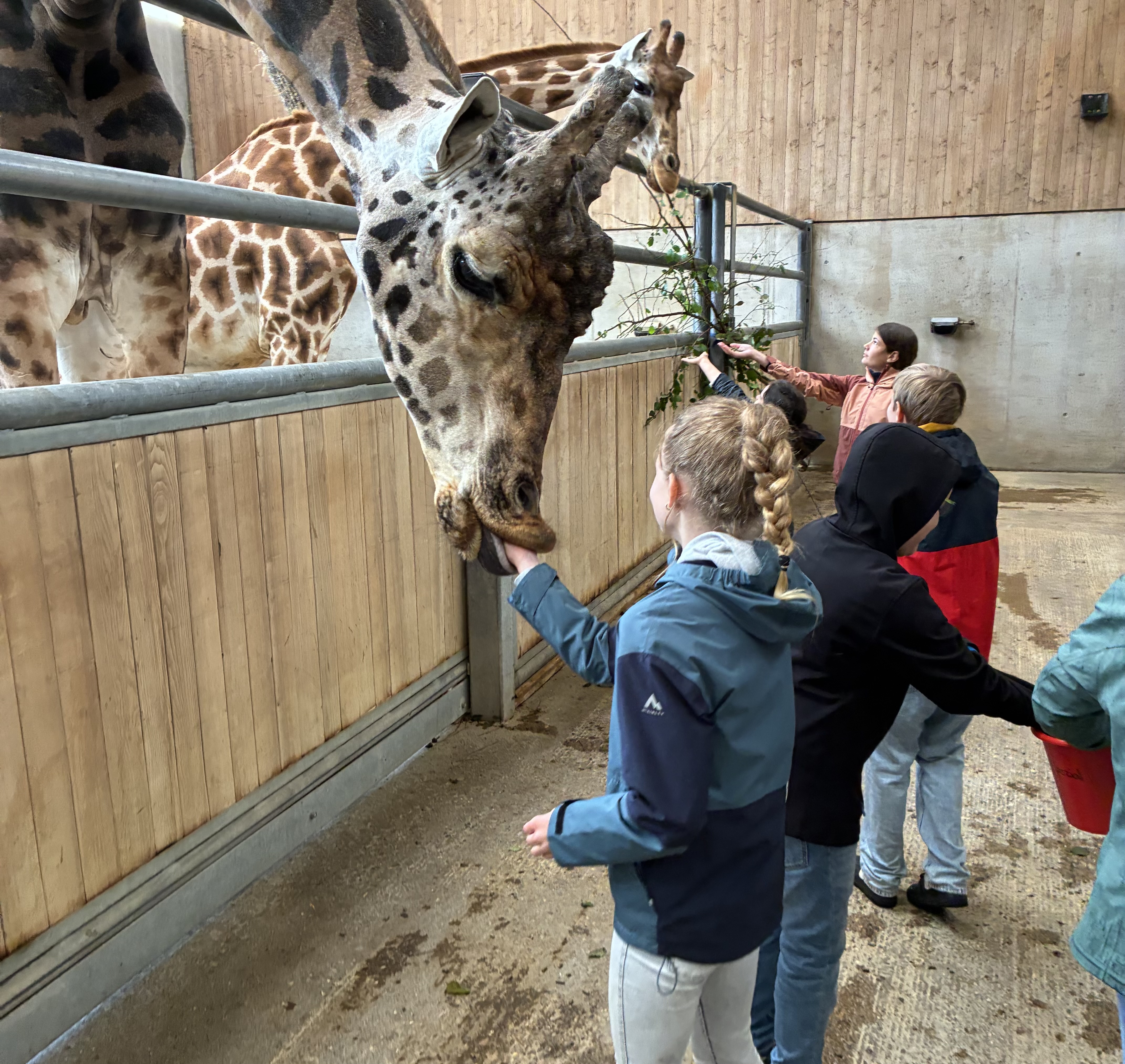 - Am Donnerstag gingen wir in den Zoo und durften die Giraffen füttern, was ich sehr lustig fand. – Ladina