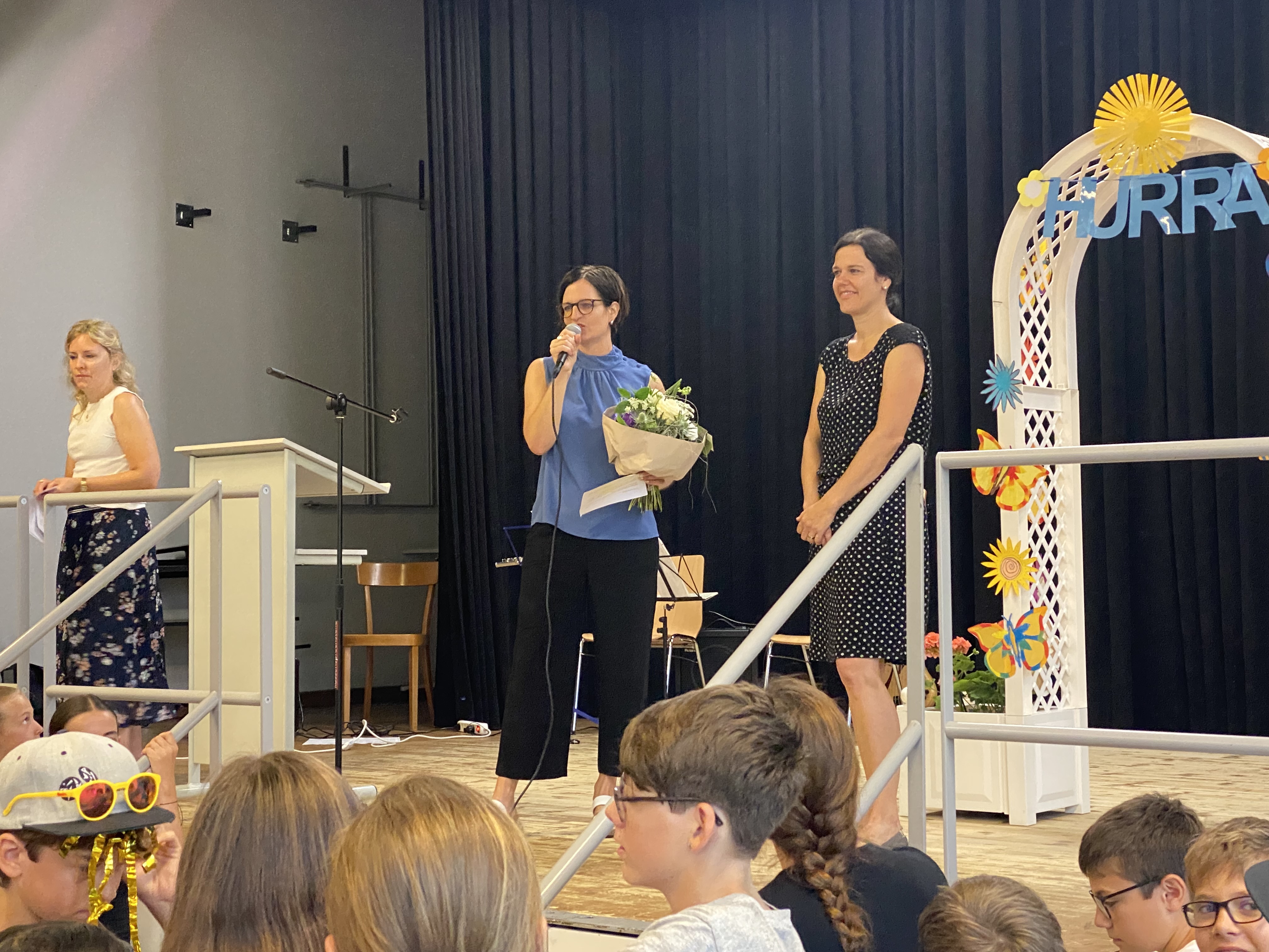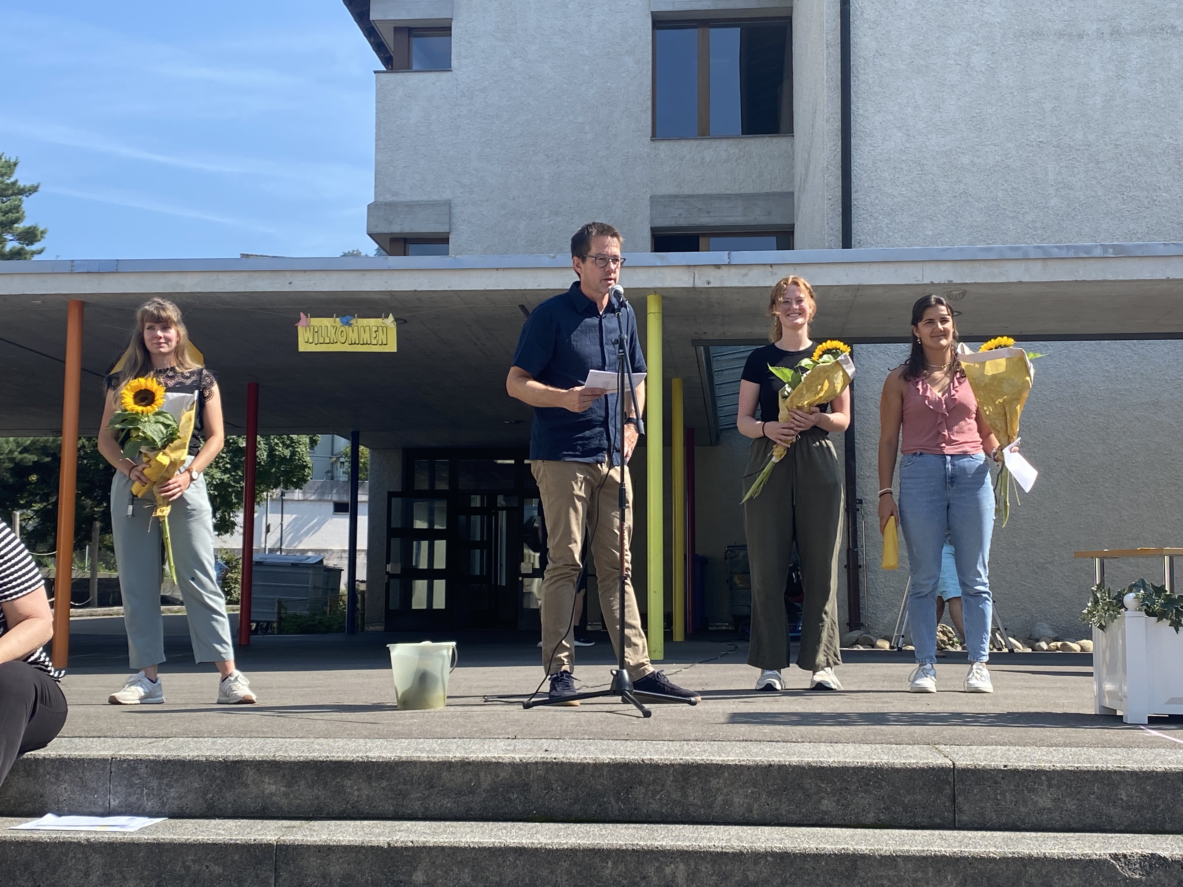 Nach der Rede der Schulleiterin Raphaela Koller, in der sie sich nochmals bei allen SchülerInnen für die schönen, gemeinsamen Erlebnisse sowie für ihren unermüdlichen Einsatz während des ganzen Schuljahres bedankte, wurde Carla Ott mit einem Blumenstrauss gebührend verabschiedet.