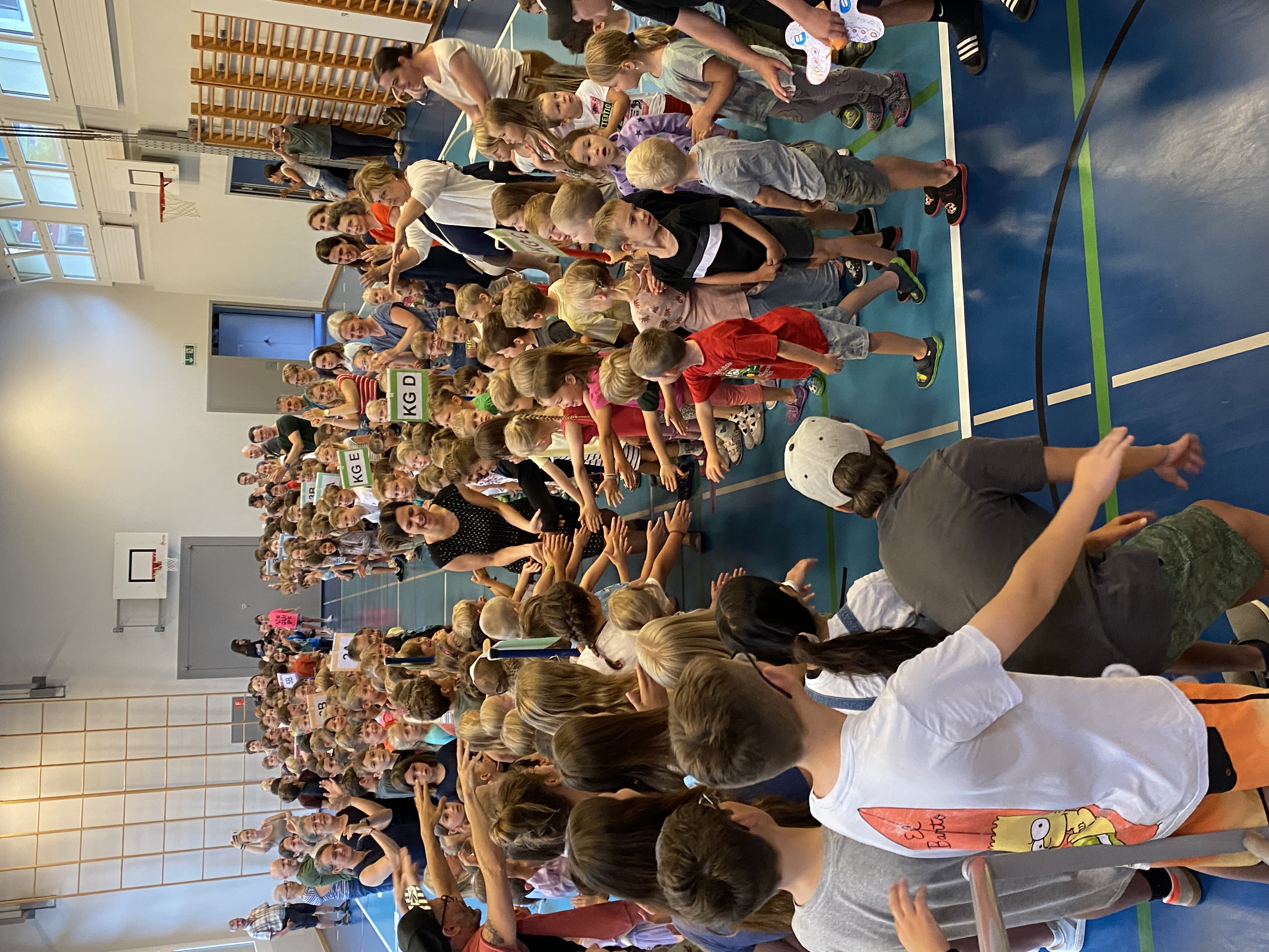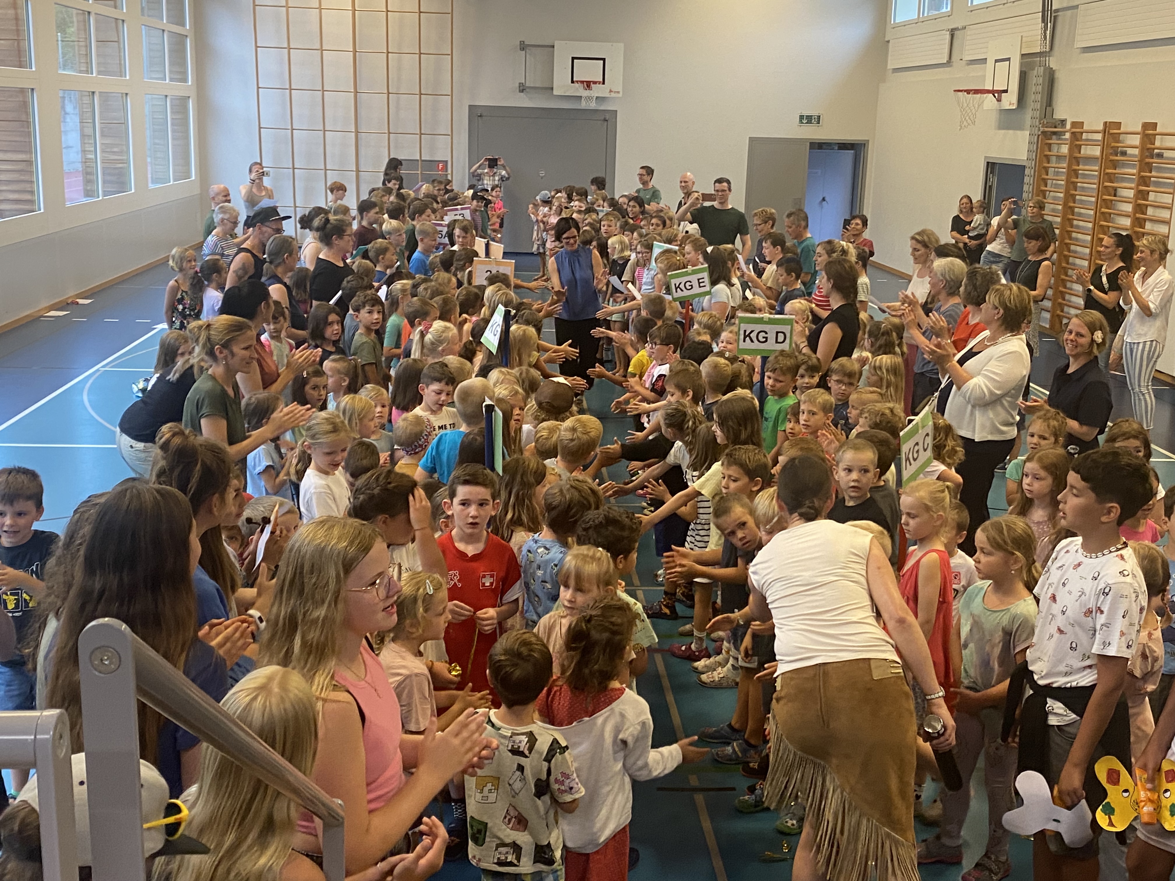Mit grosser Vorfreude auf die langen Sommerferien versammelten sich alle SchülerInnen der Primarschule Steinen am letzten Schultag in der Turnhalle.