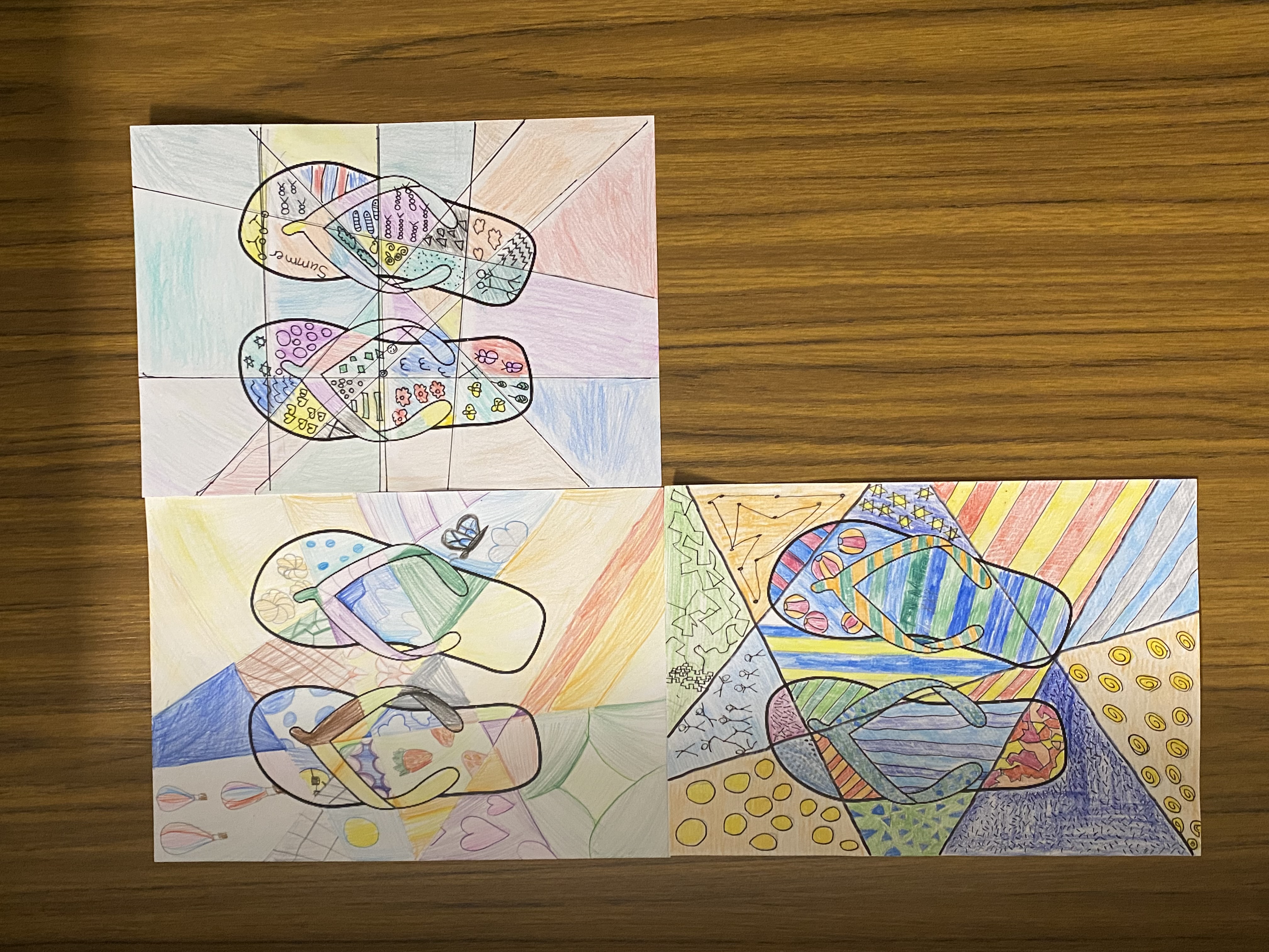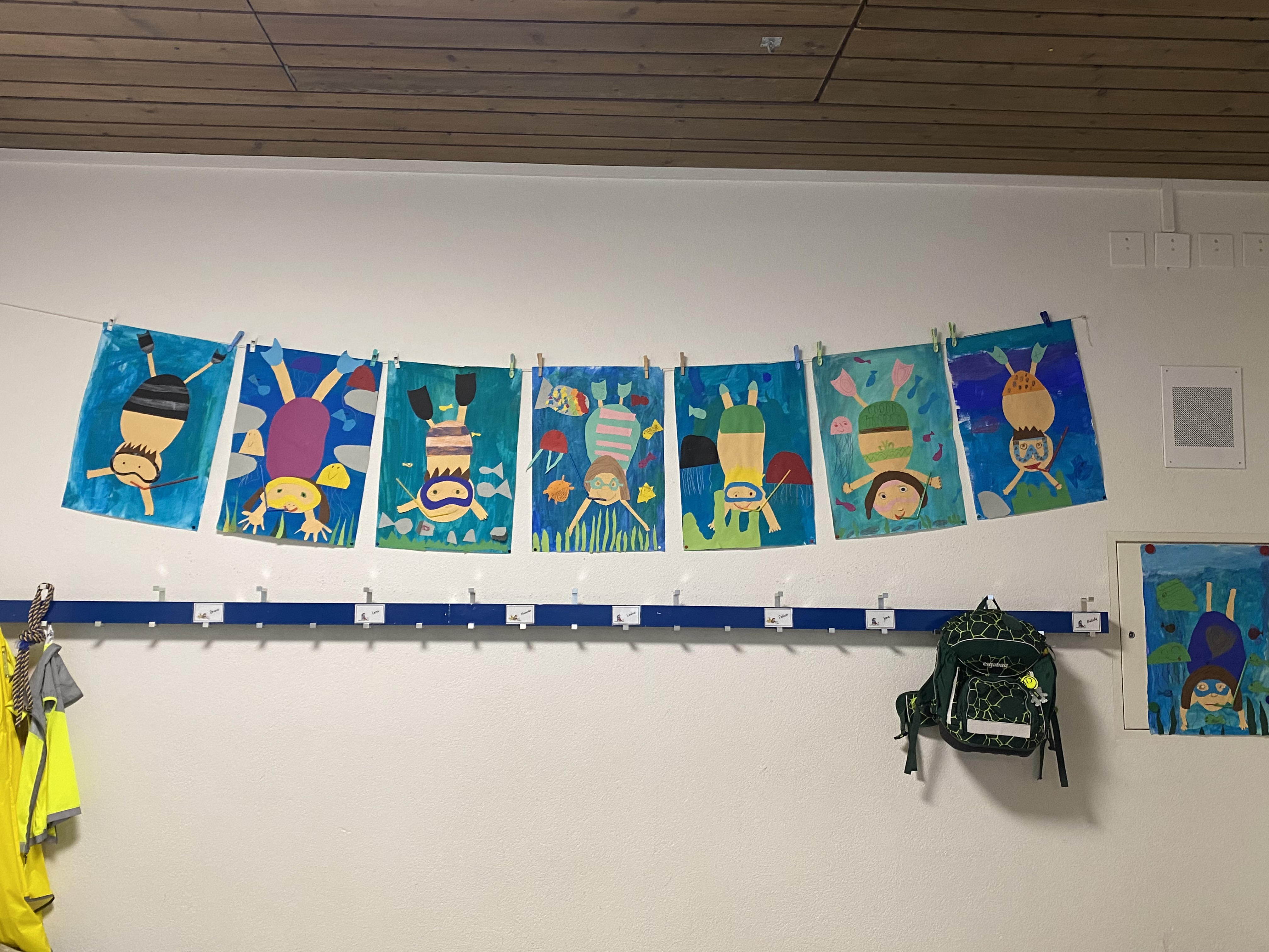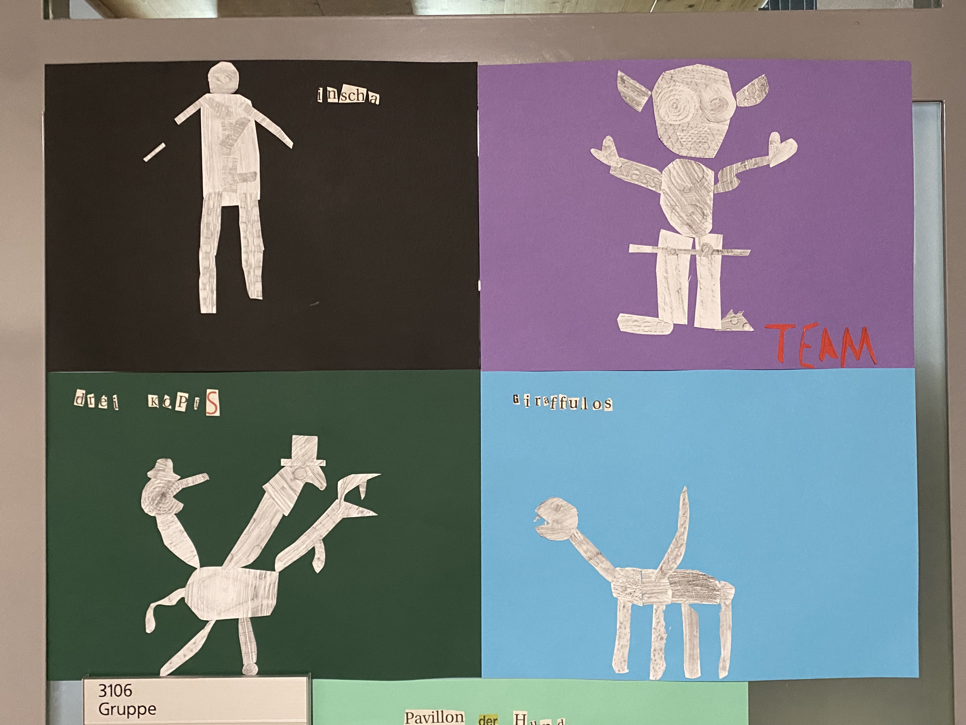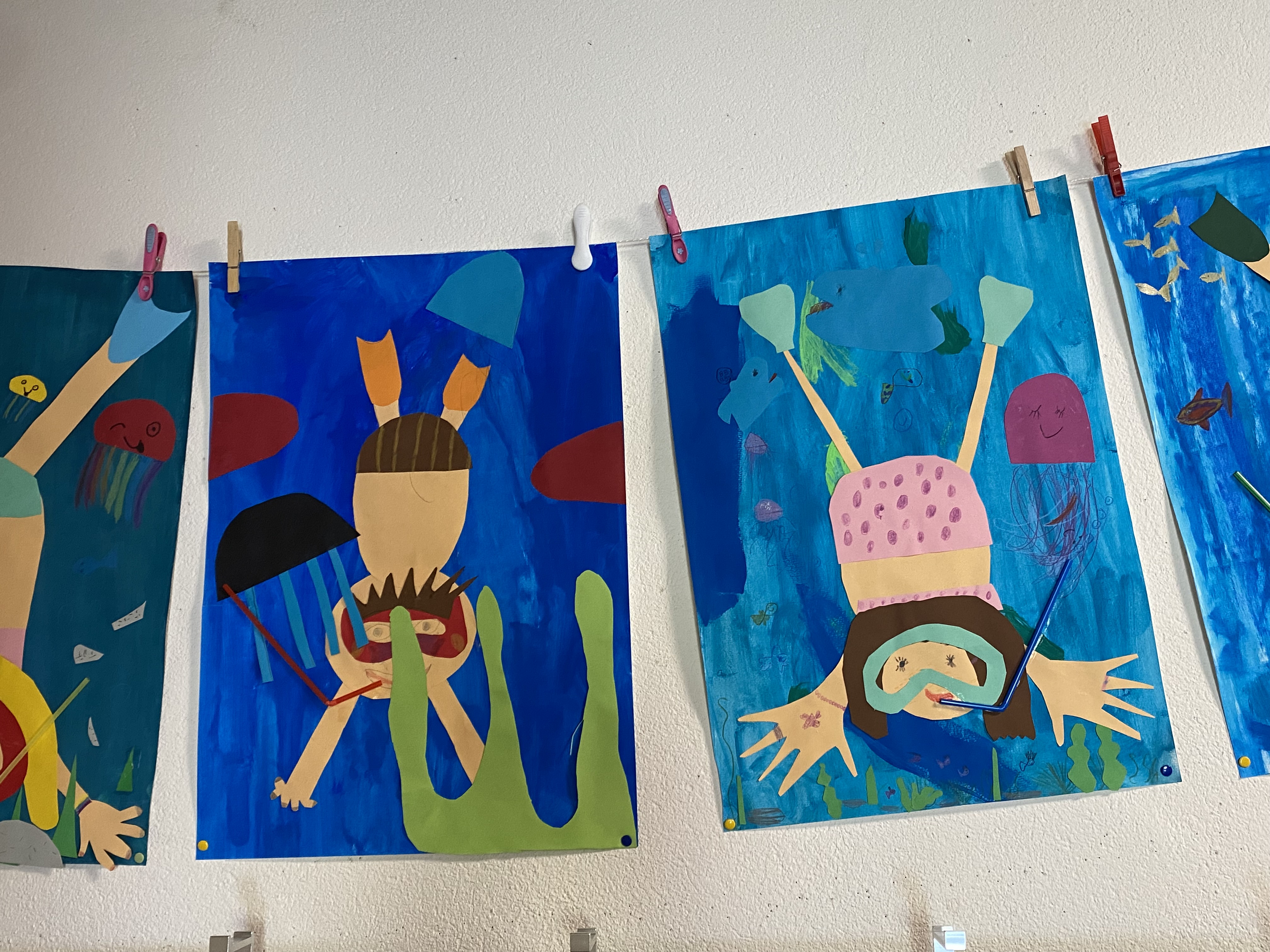 Ob mit Wasserfarben und farbigem Papier beim Tauchen, mit Farb- und Filzstiften ein Cornet oder Flipflops gestalten, mit Schere und Pritt den farbigen Papierformen neues Leben einhauchen oder mit dem Bleistift im und ums Schulhaus Jagd machen auf verschiedene Abriebe und diese anschliessend zu Fantasiegestalten zusammensetzen.