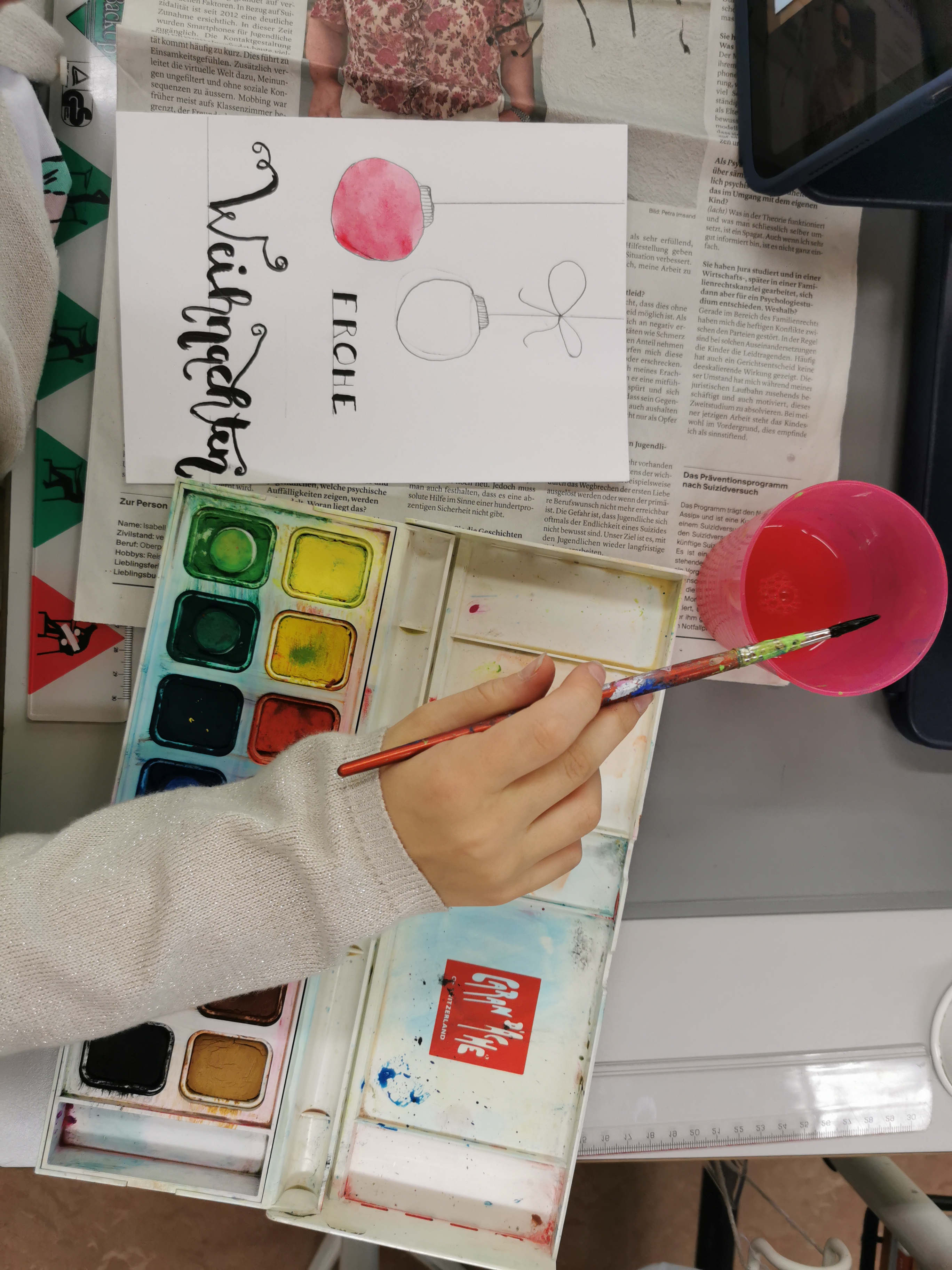 Bereits im Spätherbst wurde hinter verschlossenen Türen fleissig gearbeitet. Im textilen und technischen Gestalten, sowie im bildnerischen Gestalten entstanden mit viel Einsatz und Kreativität Adventsdekorationen und Weihnachtsgeschenke, die pünktlich zur Advents- und Weihnachtszeit fertiggestellt wurden.