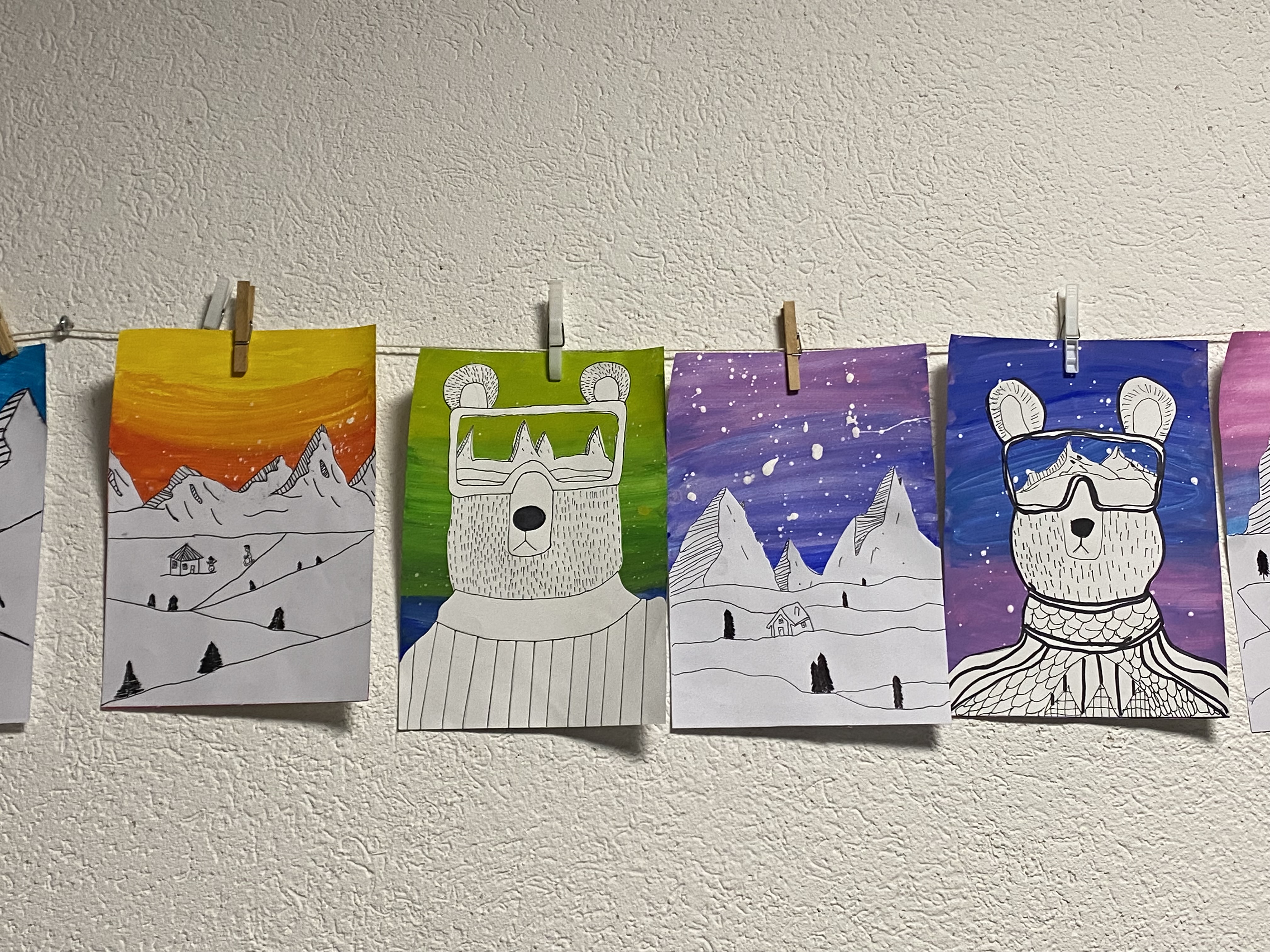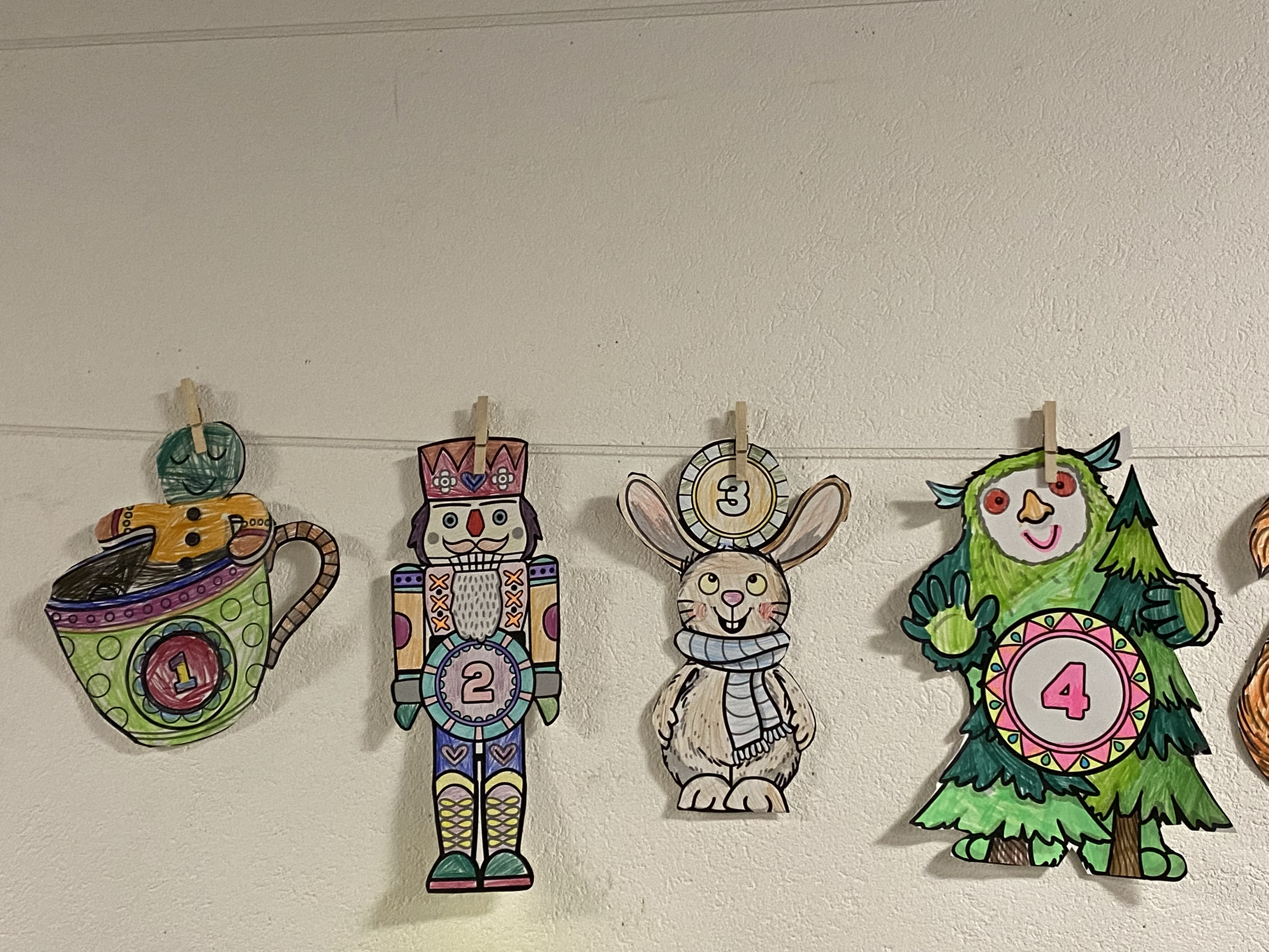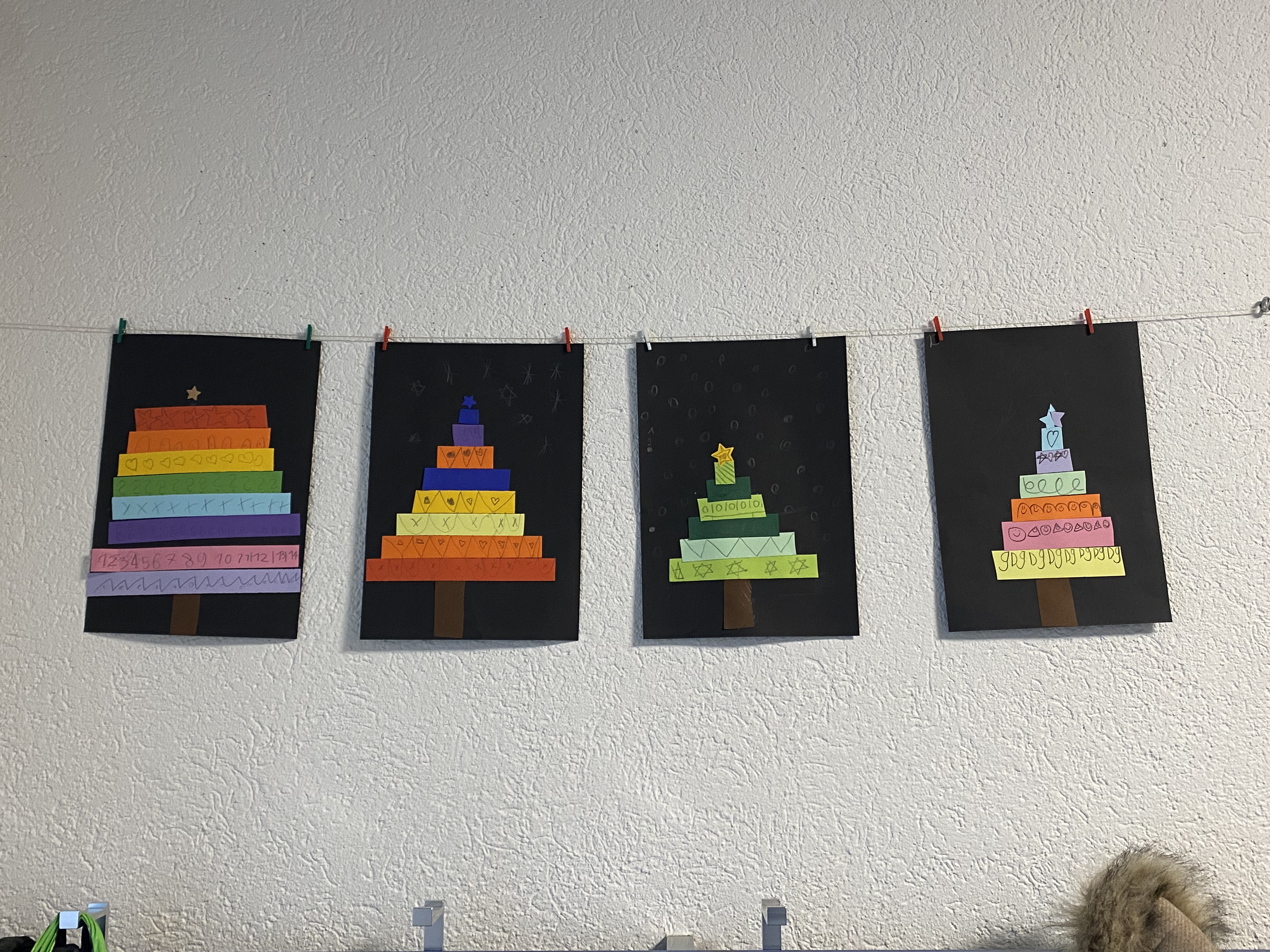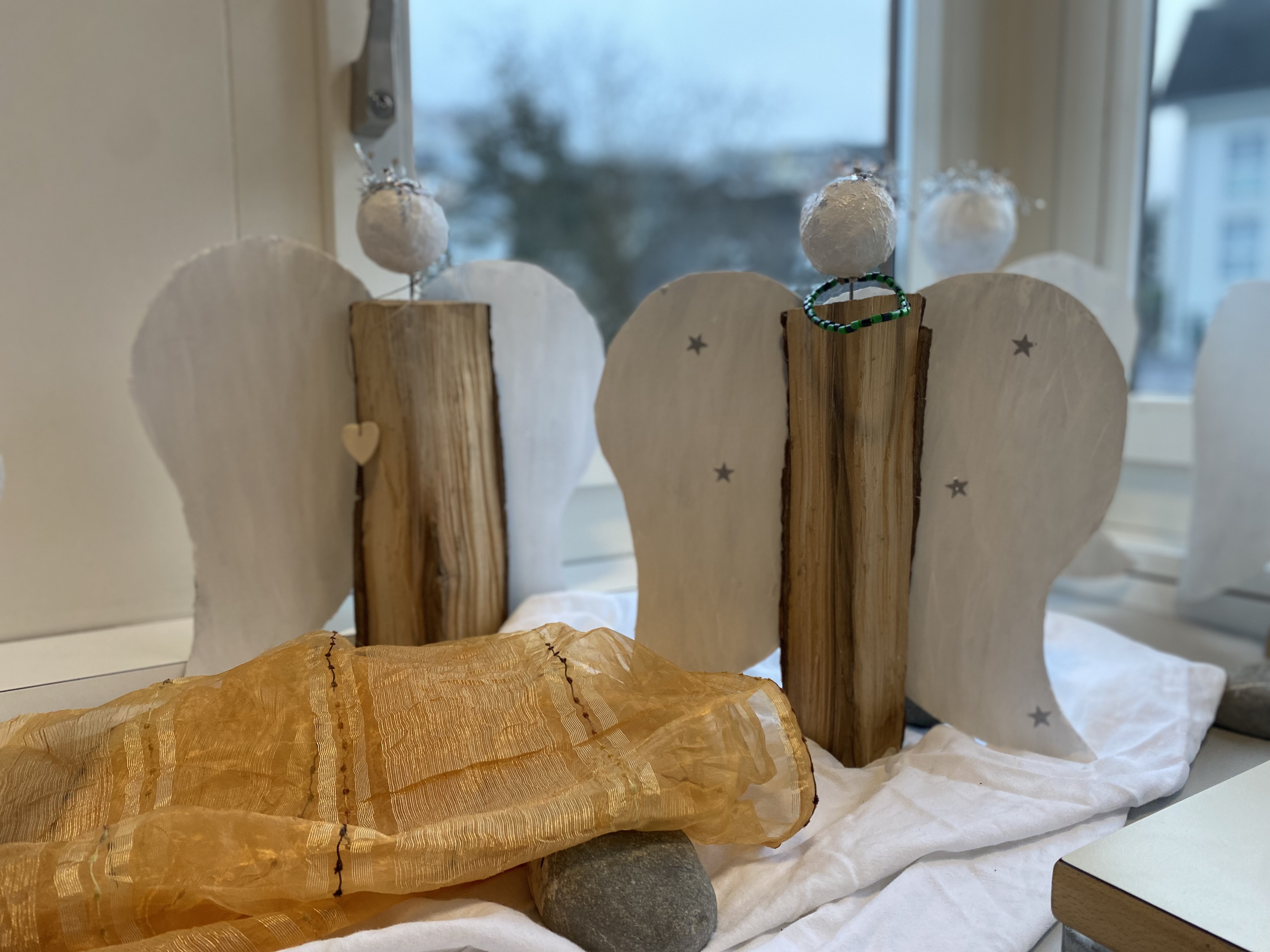 Auch im bildnerischen Gestalten entstanden zahlreiche Werke: Adventskalender, Winterlandschaften, gefaltete Sterne, Tannenbäume, grosse und kleine Engel und vieles mehr wurden mit viel Fantasie gestaltet und liebevoll dekoriert.