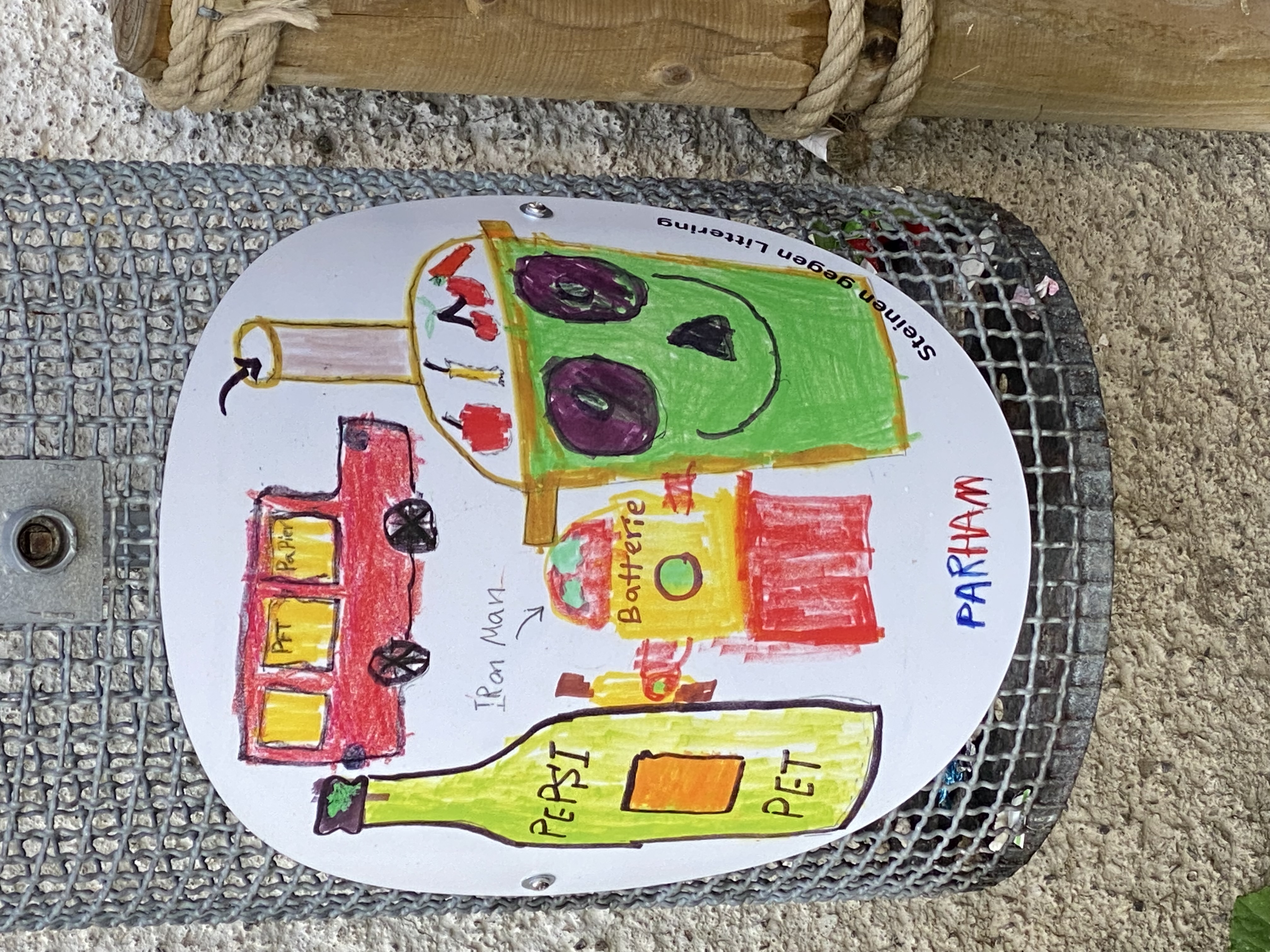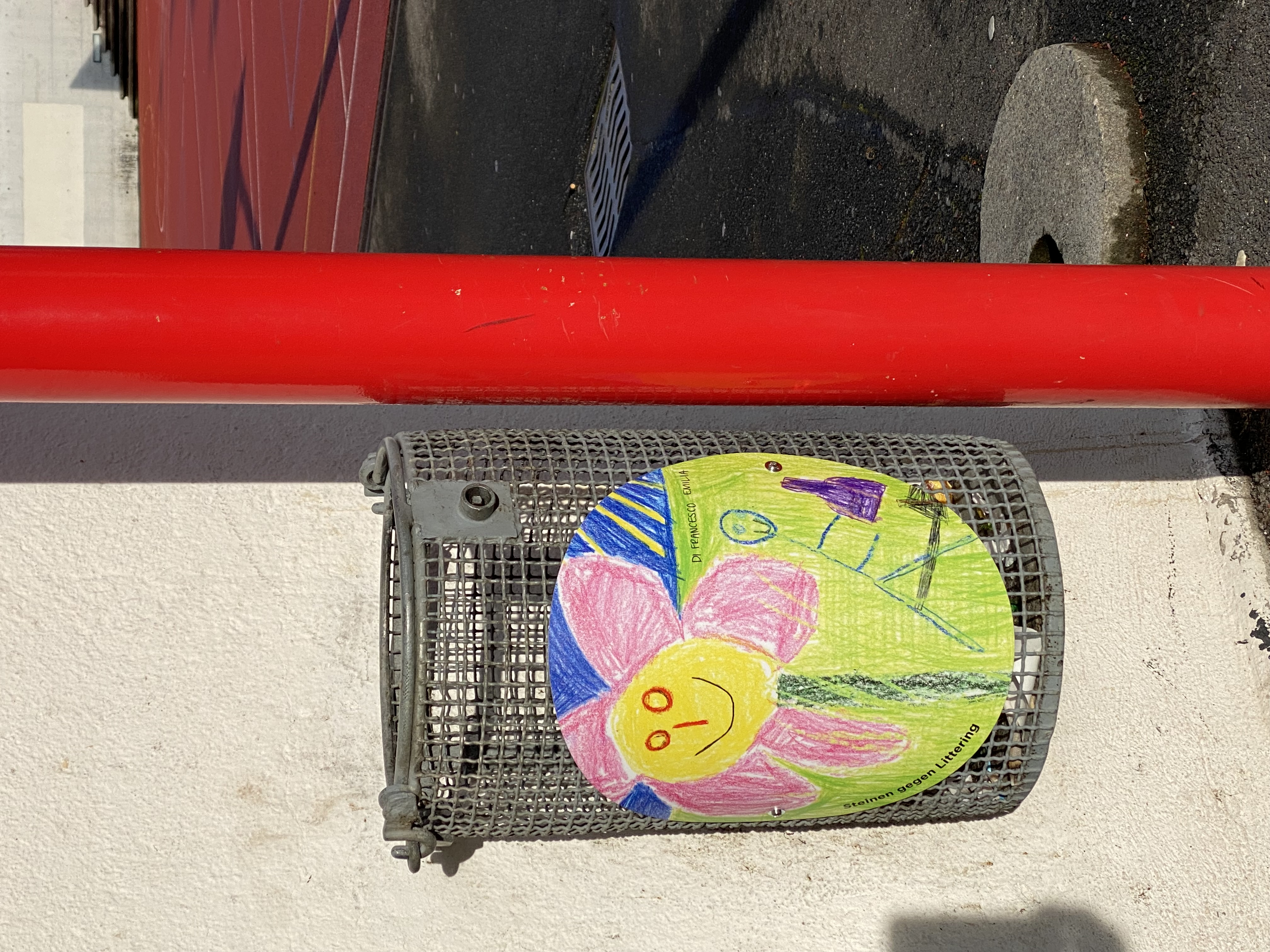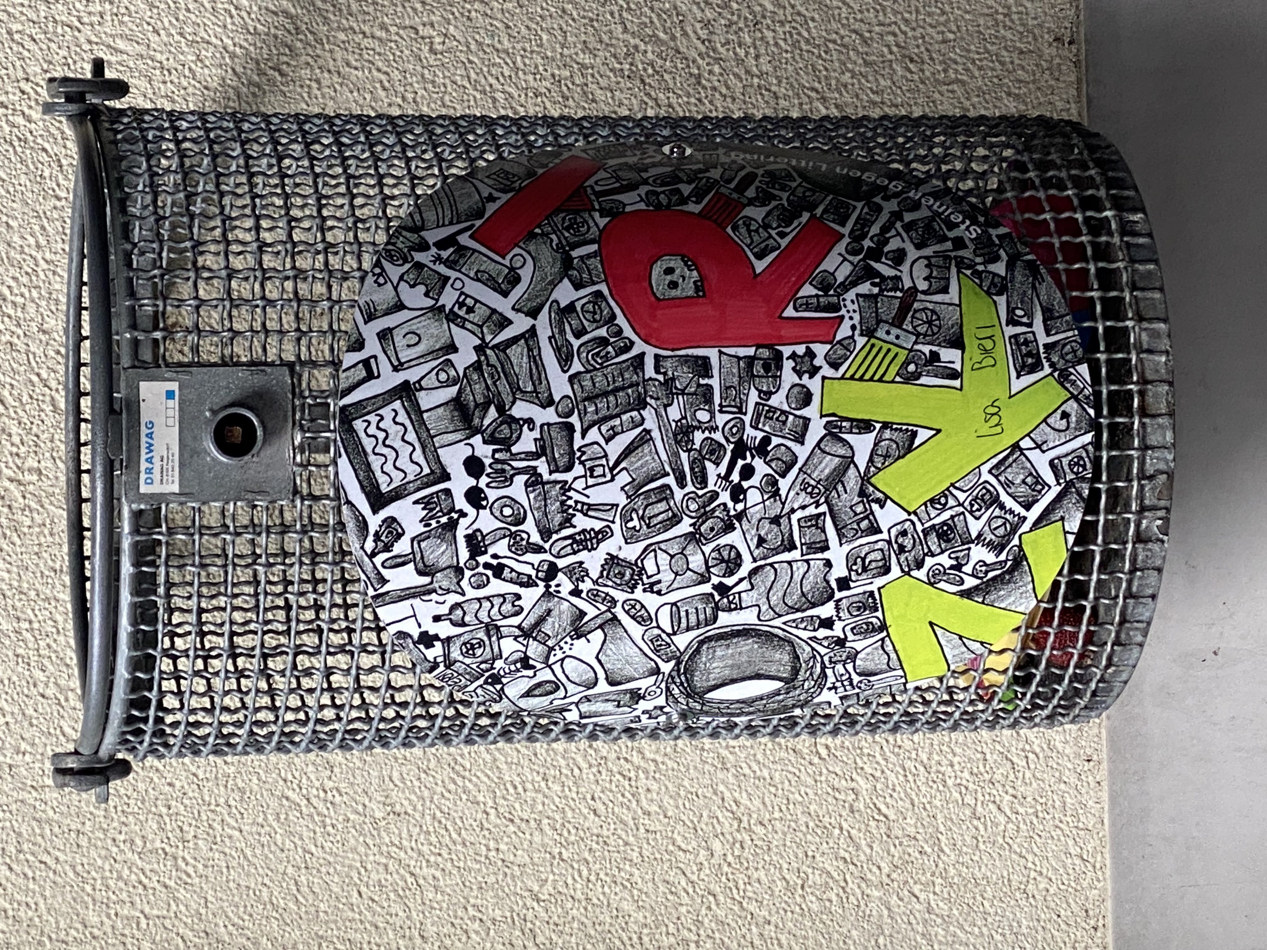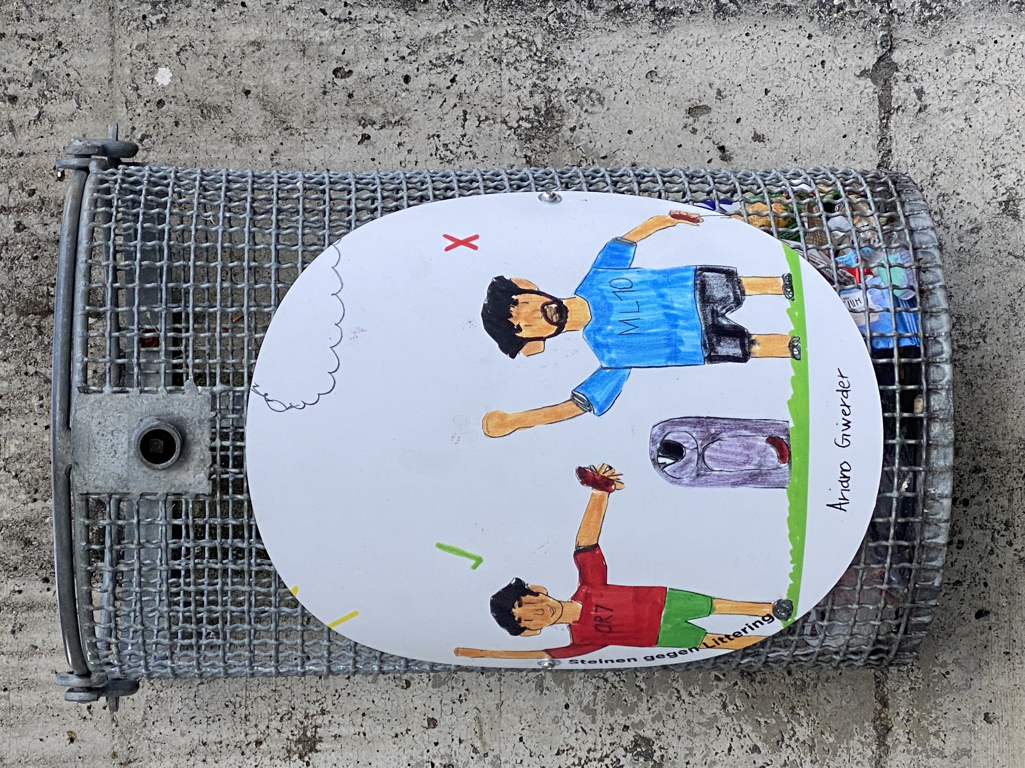 Seit Mitte Mai 2025 zieren diese Bilder nun alle Abfallkörbe auf dem Schulareal und der näheren Umgebung.