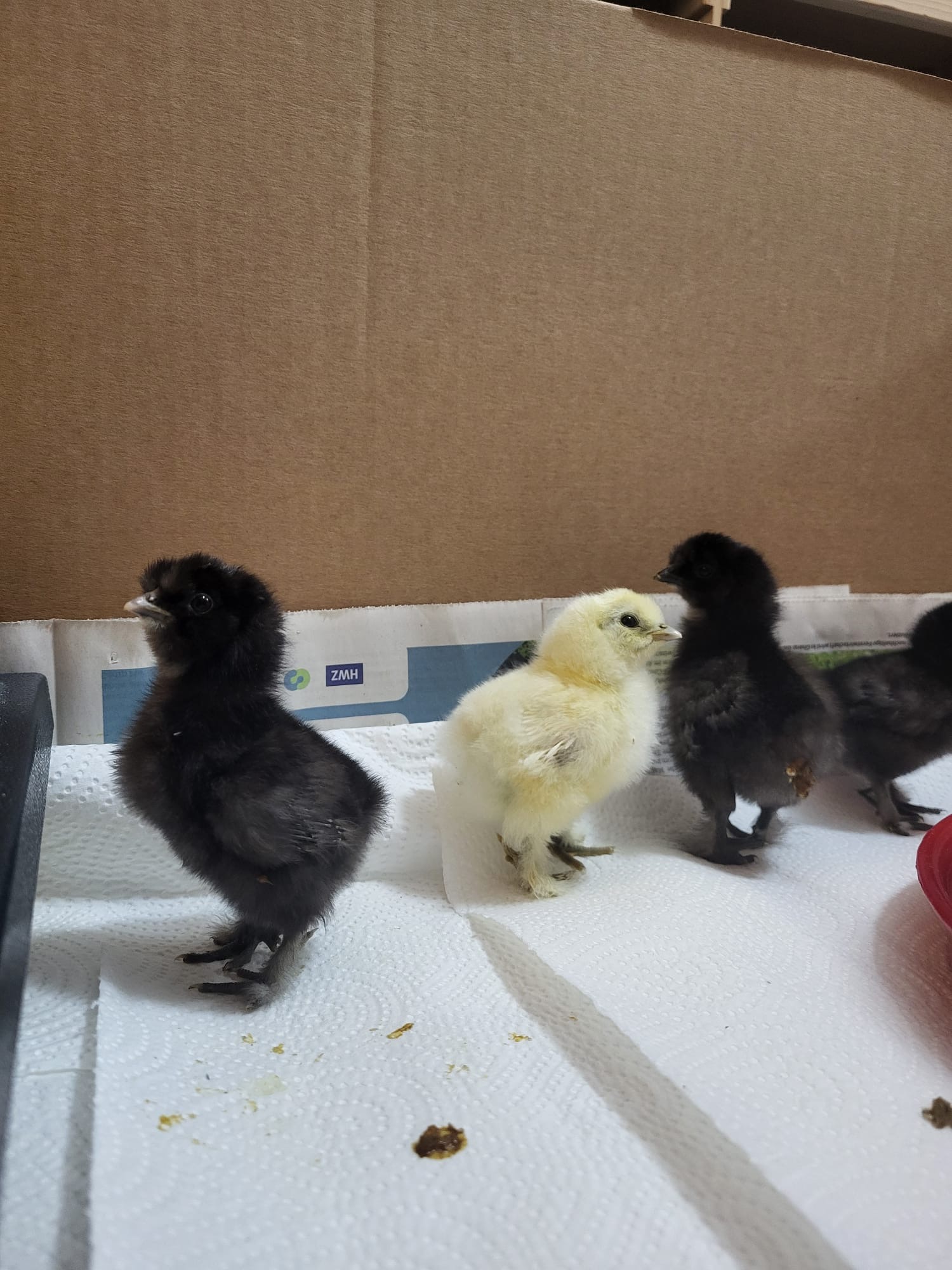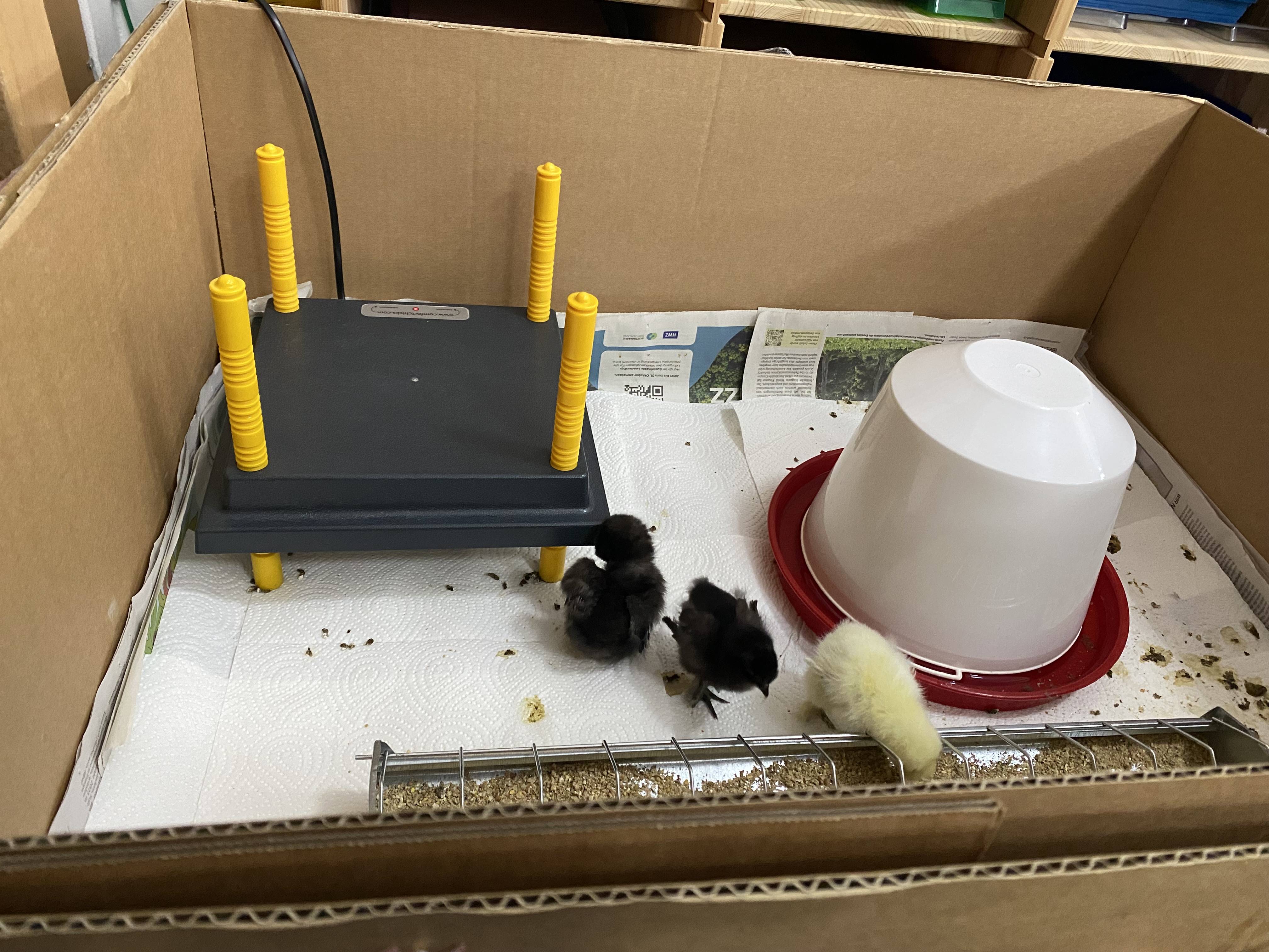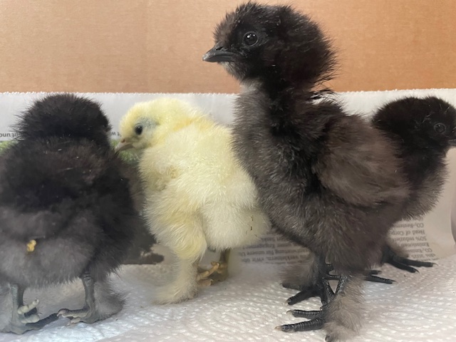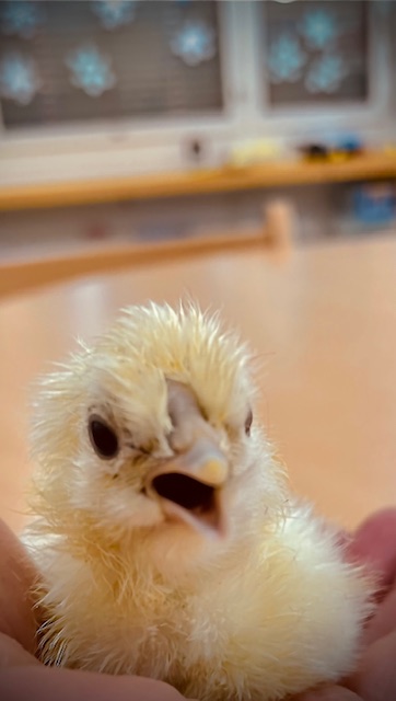 Wenn die kleinen Seidenhühner gross genug sind bringen wir sie zu Frau Müller in den Hühnerstall.