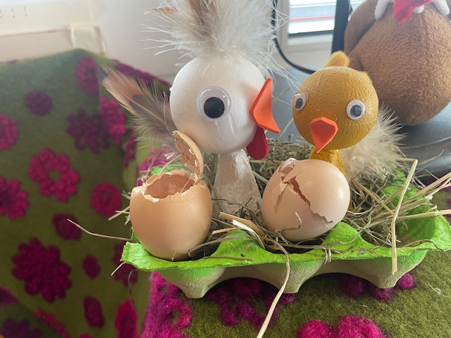 Welch spannende Zeit haben wir im Kindergarten erlebt im Eierkalender war am ersten Tag nur ein roter Punkt im Eigelb und unser Osterbaumkalender wurde mit jedem Tag hübscher geschmückt.