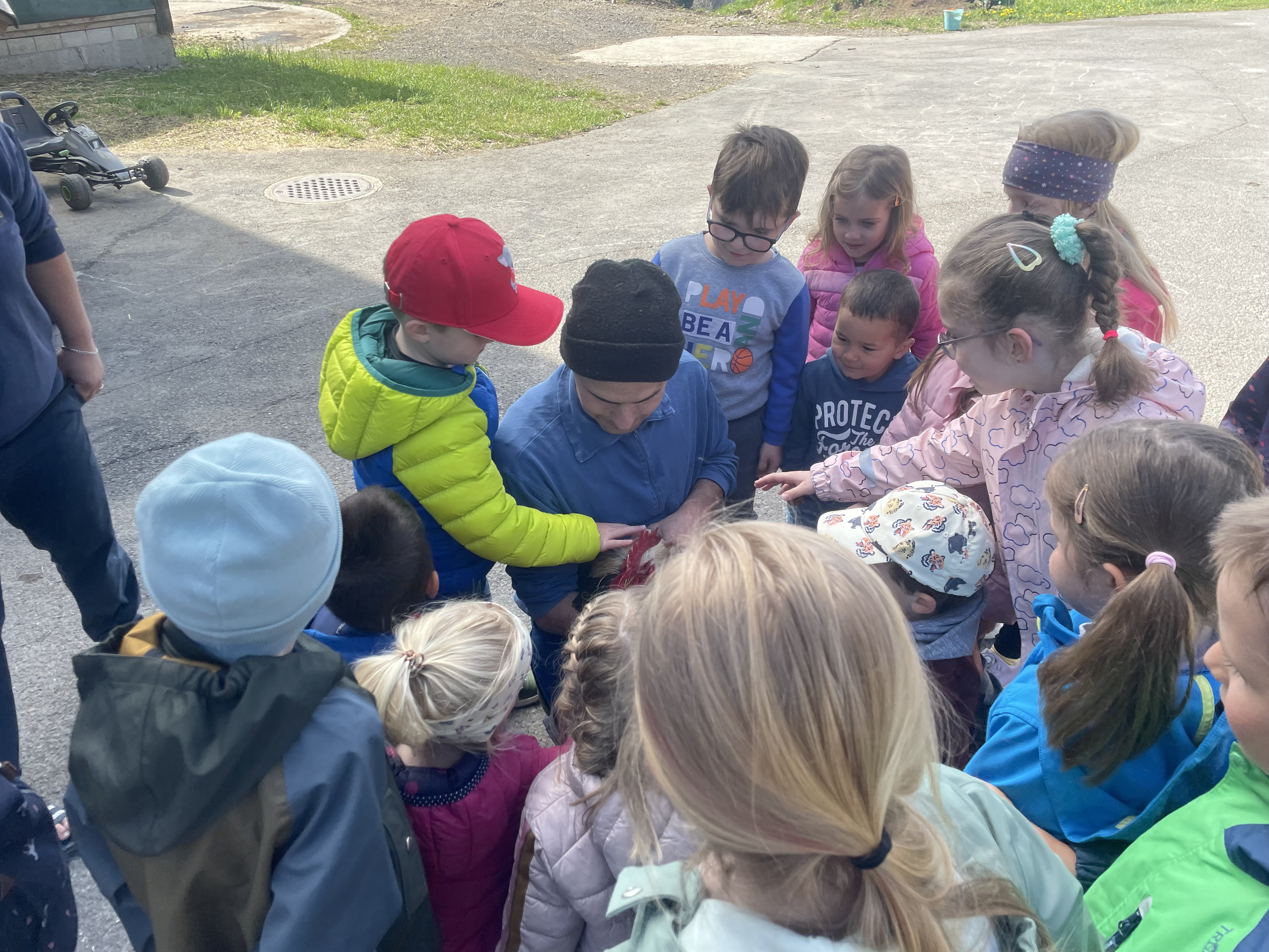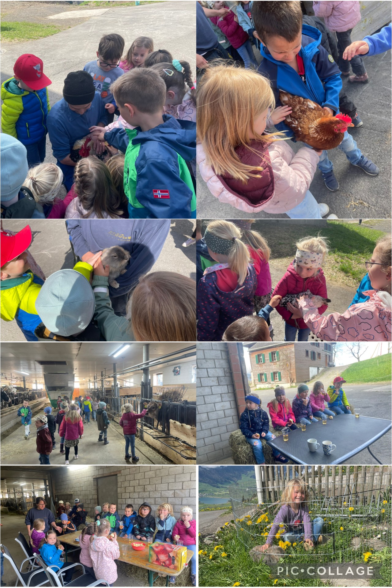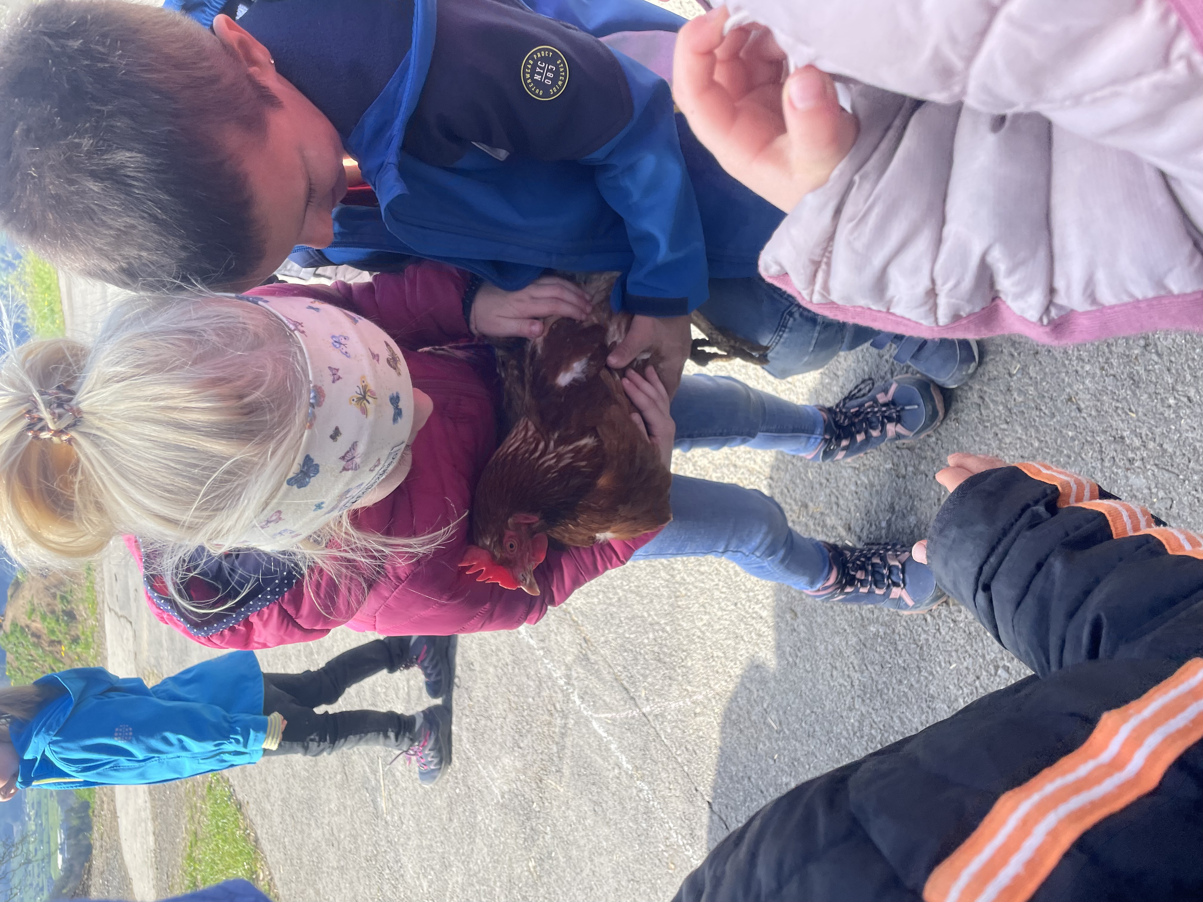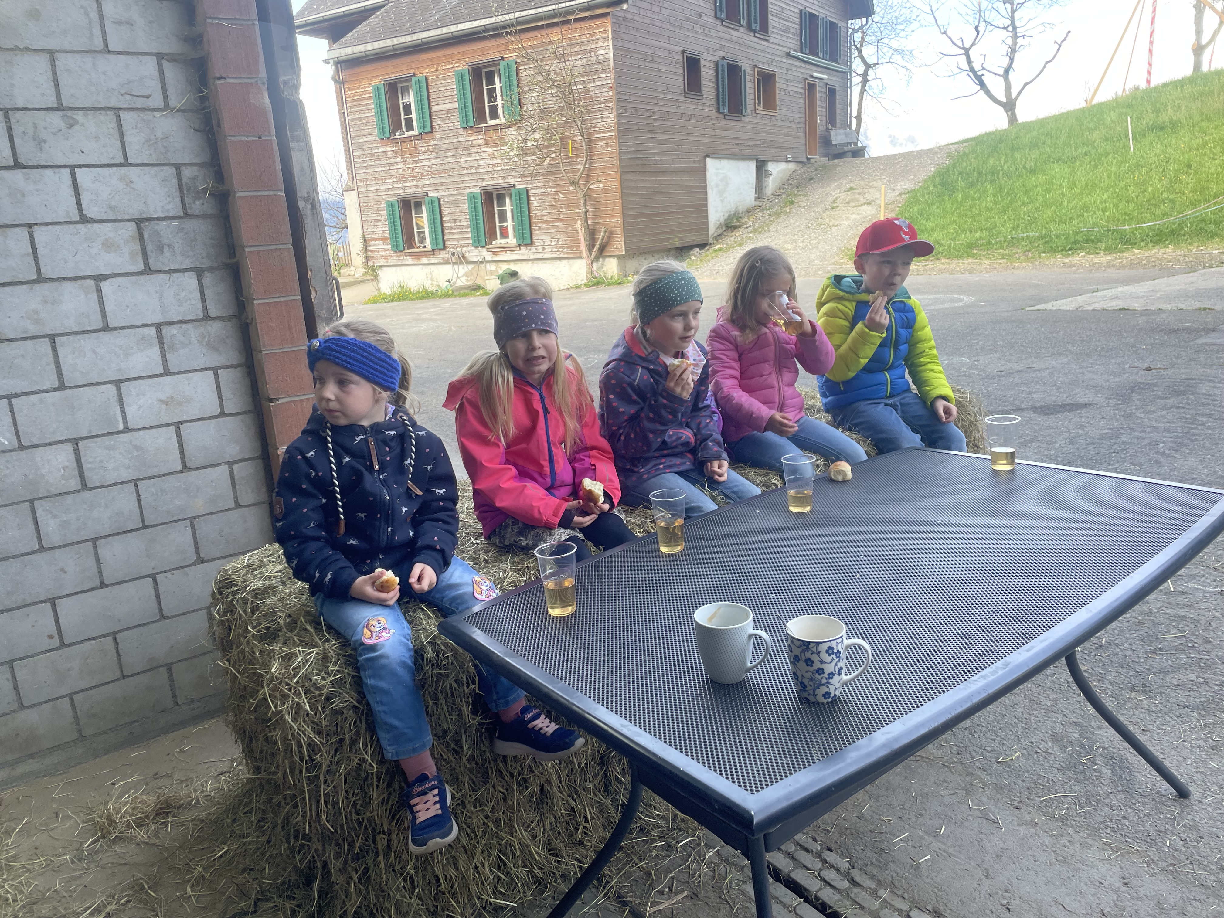 Vor Ostern beschäftigte uns das Thema Huhn im Chindsgi. Wir haben Geschichten gehört, Osterspiele gespielt und Lieder gesungen. Als Highlight des Themas durften wir den Besuch auf dem Bauernhof bei Familie Ott erleben. Mit einem feinen „Buureznüni“ durften wir in die Welt und das Leben auf dem Bauernhof eintauchen. Wir lernten neben den Hühnern und dem Hahn weitere Bauernhoftiere näher kennen. Sie uns durch unsere Streicheleinheiten ebenfalls.