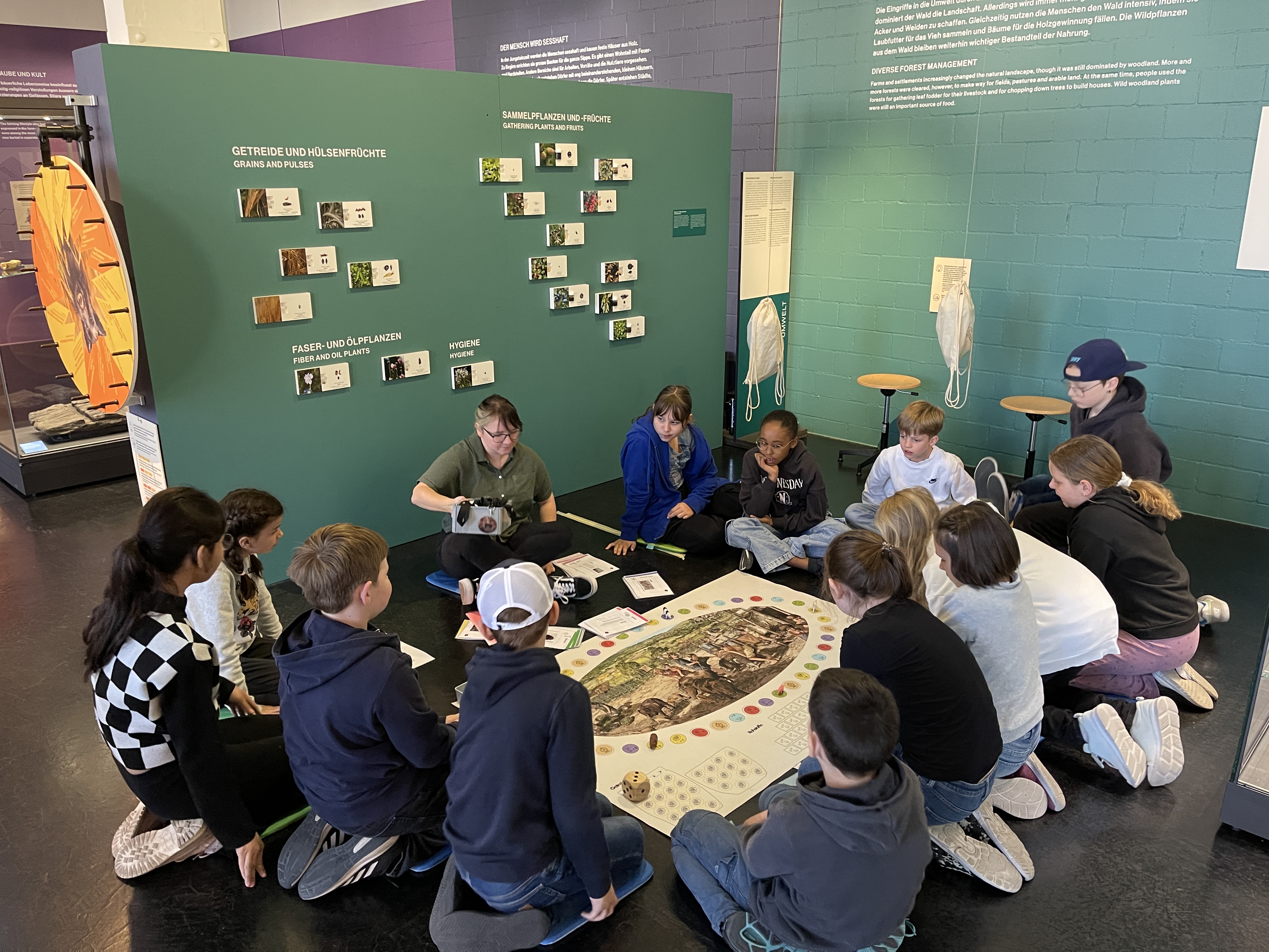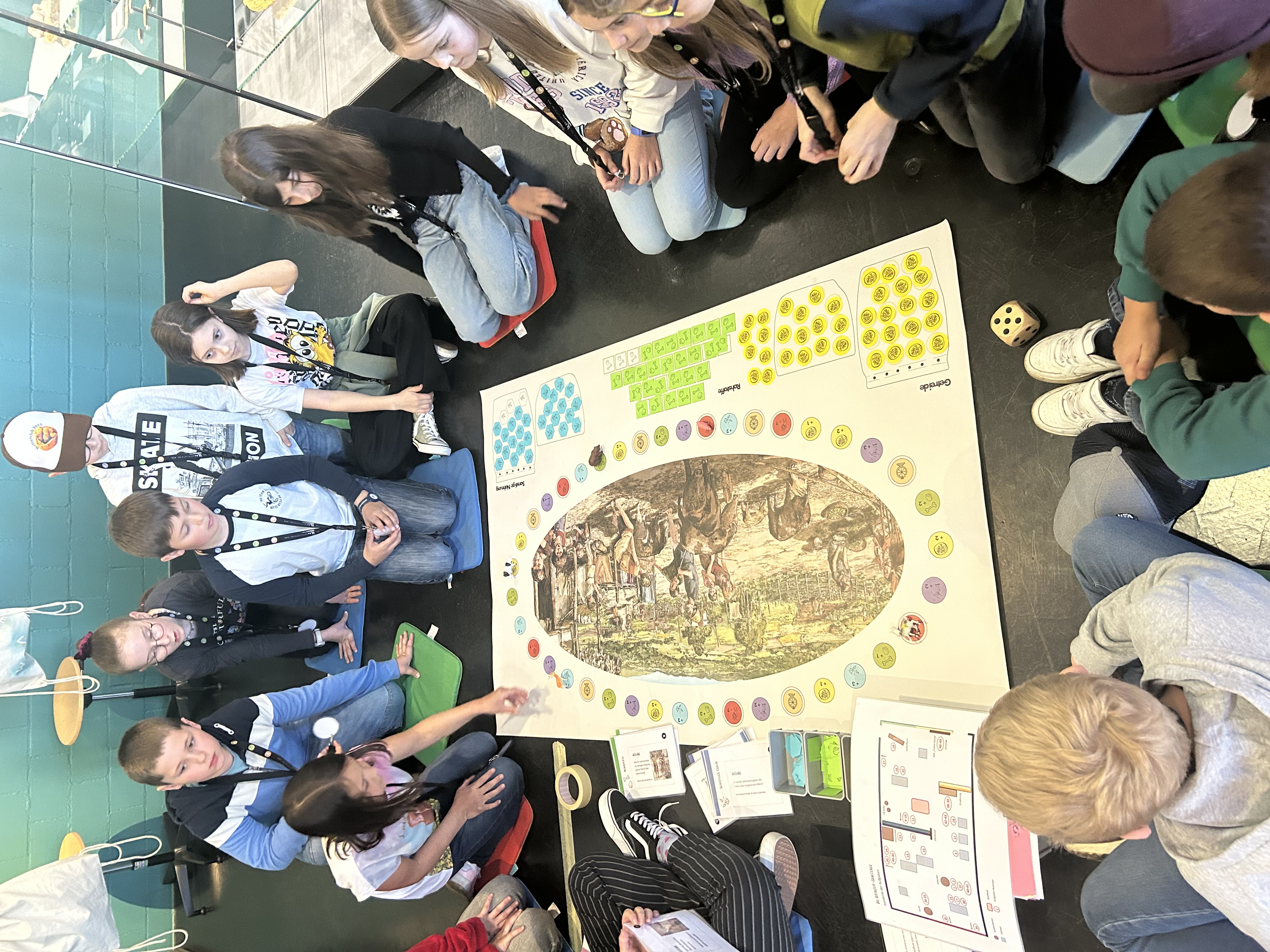 Im Zentrum stand die Steinzeit-Challenge der Sonderausstellung «Alles wird anders – Leben in der Jungsteinzeit». Bei diesem Spiel sammelten die Kinder in Gruppen Rohstoffe und Vorräte für ein Dorf, wie es vor Tausenden von Jahren existiert haben könnte.