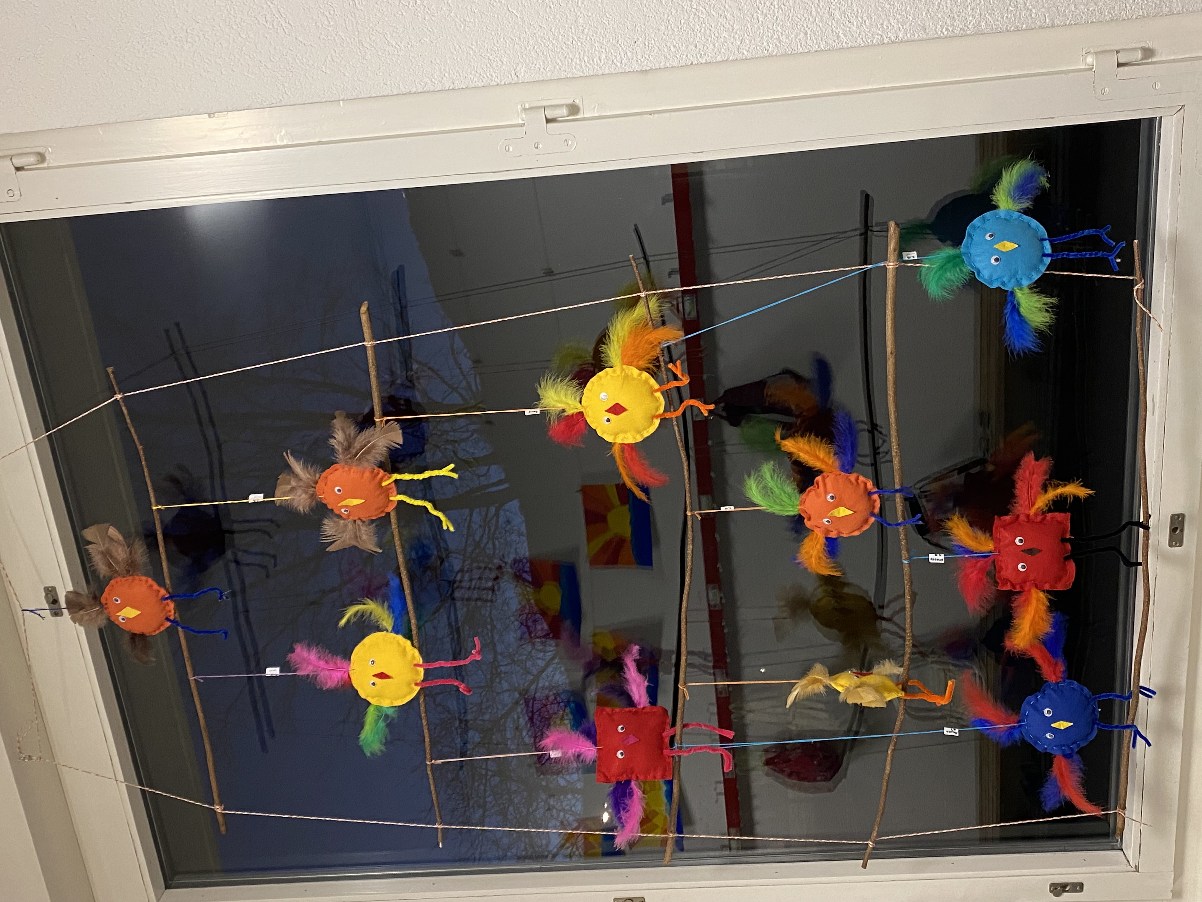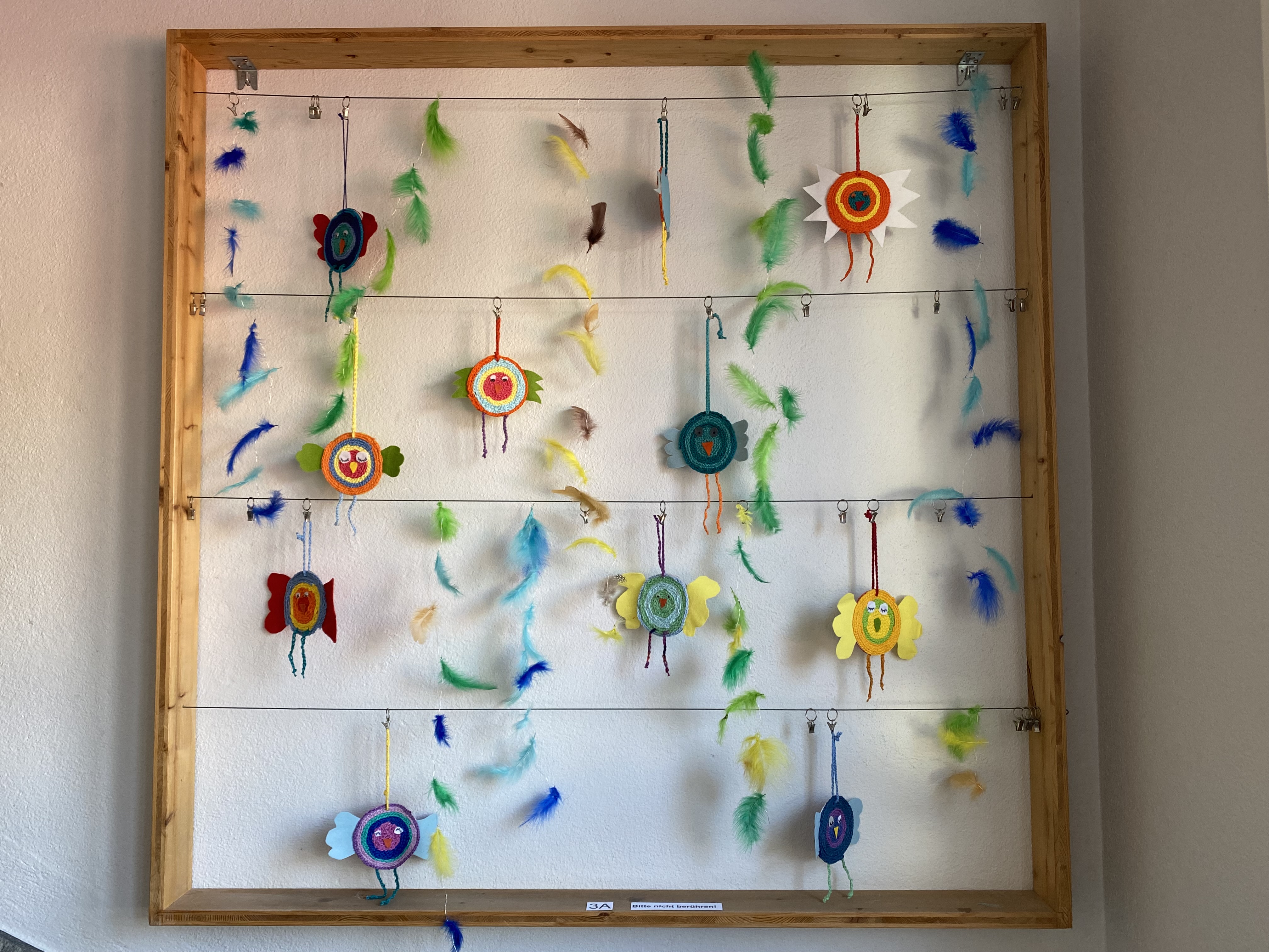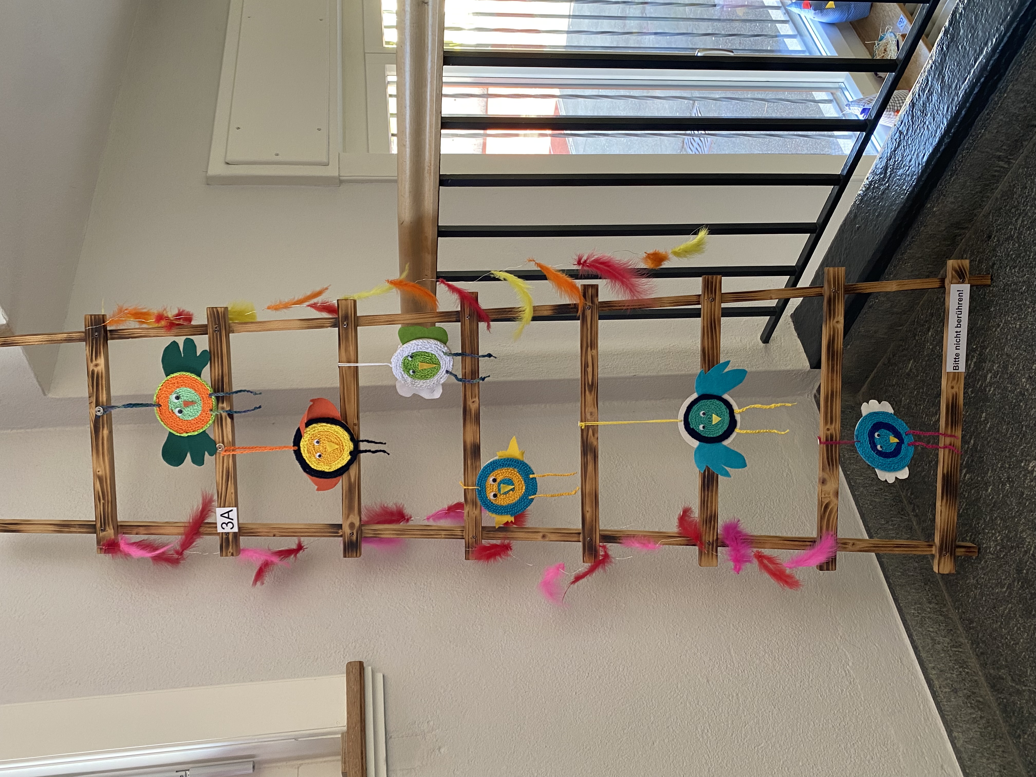 Wie schon seit vielen Jahren üblich, waren in der Woche vor den Schulbesuchstagen die Türen zu den Handarbeitszimmern geöffnet. Was unter der Woche zögerlich begonnen hat, endete am Freitag und Samstag in einem wahren Besucherstrom. Eltern, kleinere und grössere Geschwister, Grosseltern, Paten und Freunde liessen es sich nicht nehmen, wieder einmal Schulluft zu schnuppern. Alle Stufen vom Kindergarten bis zur 6. Primarschule konnten in dieser Zeit besucht werden. In den Schulhauseingängen luden die in der Handarbeit hergestellten, farbenprächtigen Hühner zum Bestaunen ein. Interessierte können die Ausstellung noch bis zu den Frühlingsferien besichtigen. An den Wänden reihten sich farbenfrohe, stimmungsvolle Bilder aneinander.